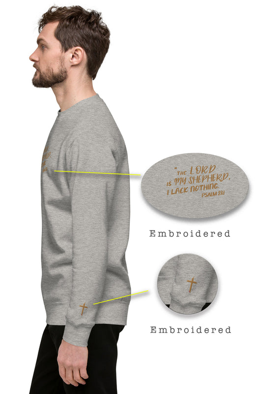 Embroidery Psalm 23 The Lord Is My Shepherd and the Cross Premium Sweatshirt