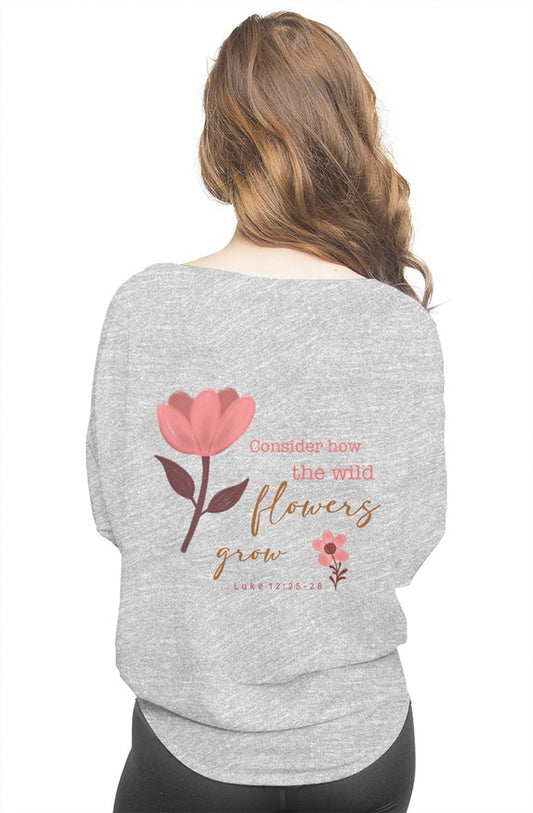 Wild Flowers Grow Bible Verse - Flowy Draped Tee